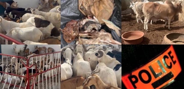 Le Commissariat central de Saint-Louis a également saisi un (01) cheptel de cinquante-quatre (54) bêtes composées de neuf (09) bœufs avec différents marquages aux cuisses droite et gauche, vingt-trois (23) caprins, treize (13) béliers, sept (07) agneaux et deux (02) cabris. Mais ce n’est pas tout, car les limiers ont saisi huit (08) sacs de foin d’arachides ; trois (03) sacs d’aliments de bétail ; six (06) couteaux ; une (01) scie ; cinq (05) peaux de petits ruminants (fraichement dépecées) ; deux (02) peaux bovines (fraichement dépecées) ; trois (03) crochets pour abattoir ; deux (02) pélicans. «Les mis en cause conduits au service ont été placés en position de garde-à-vue. Les recherches se poursuivent aux fins d’interpeller toute personne impliquée dans cette affaire», précise la police dans son communiqué.